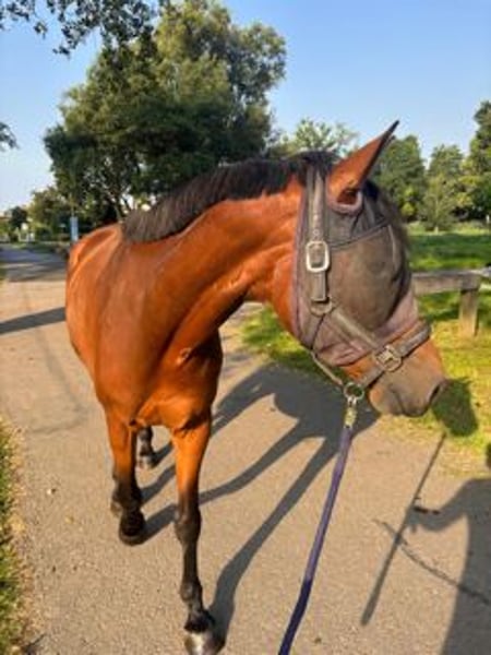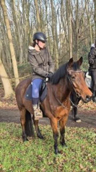 Hierbij bied ik mijn 10-jarige ruin Flip te koop aan. Flip is een lief paard van 1.63. Zijn hoeven zijn altijd netjes bijgehouden, hij staat zonder ijzers. Hij is ieder jaar geënt en naar de tandarts geweest. Hij loopt braaf of de trailer en is braaf tijdens het bekappen. Ik rijd sinds december weer met Flip en we rijden nu ongeveer 3 keer per week. Ik rijd alleen maar in het bos, niet in de bak. Ik rijd zonder sporen of zweep. Sinds een aantal weken rijd ik bitloos(side-pull) met hem en ik heb het idee dat hij dit fijner vind dan met bit. Ik ben nog niet alleen met hem naar buiten geweest, altijd met 1 of meerdere stalgenoten. Tijdens het rijden is hij over het algemeen braaf en heeft hij veel energie. Hij houdt niet van natte voetjes dus waterplassen ontwijkt hij netjes. Als hij iets spannend vind is zijn eerste reactie stilstaan en ernaar kijken. Hij kan af en toe bokken, hij heeft bij mij nog nooit gesteigerd. Naast het rijden wandel ik ook 2-3 in de week aan de hand. Aan de hand is Flip super braaf, als hij iets spannend vindt is hij goed te begeleiden. Ik wandel zowel samen met stalgenoten als alleen met hem. Hij kent groot verkeer zoals vrachtwagens, bussen en graafmachines. Meestal is hij hier niet van onder de indruk. Hij is ook braaf met (blaffende)honden en kinderen. Hij vindt het niet leuk als er honden aan zijn achterbenen zitten en gaat dan wel dreigen, maar hij heeft bij mij nog nooit echt getrapt. Flip staat in een kudde met 3 andere paarden 24/7 buiten met onbeperkt hooi. Binnen de kudde is hij dominant en stuurt hij de andere paarden weg, maar hij jaagt niet op de andere paarden. Flip is gevoelig voor maagzweren en daarom ben ik op zoek naar een specifiek huisje voor hem. Hij gedraagt zich goed onder de omstandigheden zoals ik hem nu heb staan. Ik zoek dan ook een plek waarin hij weer 24/7 met andere paarden en onbeperkt hooi buiten komt te staan. Ik heb het idee dat hij stress ervaart in de bak en daarom zoek ik een huisje waarin hij niet in de bak aan de slag hoeft. Het vinden van een goed nieuw huisje is het belangrijkste voor mij. Voor een goed huisje is de prijs bespreekbaar. Maneges, handelaren of andere mensen die een verdienmodel in Flip zien hoeven niet te reageren.