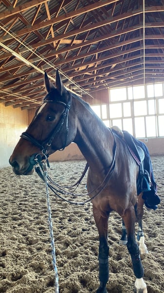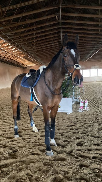 Étant donné que je vais me retirer du monde équestre pour des raisons familiales, je mets en vente mon grand hongre de saut d'origine – Andiamo x Lupicor. Hongre de 11 ans, mesurant 1,86 m, joueur, sensible, très proche de l'humain. Bonne et solide formation de base. Présenté jusqu'à 105 cm en parcours. Les tracteurs et voitures ne posent aucun problème pour lui. Sensible dans de nouvelles situations, mais généralement manipulable. En raison de sa taille, ce n’est pas un cheval pour débutants ou enfants. Actuellement en reprise progressive après une pause due à une blessure. Il prend beaucoup de plaisir à sauter pour le plaisir, sans être regardant sur les barres ou l’eau. Ce n’est pas un cheval pour débutants ou cavaliers peu expérimentés – un cheval puissant qui nécessite une conduite claire, calme et expérimentée. En échange, vous obtenez un partenaire motivé pour le loisir. Actuellement en box avec accès direct et toute la journée à un paddock, en été 24h sur 24 au paddock en pâture. L’attelage ainsi que tout l’équipement sont également disponibles.
