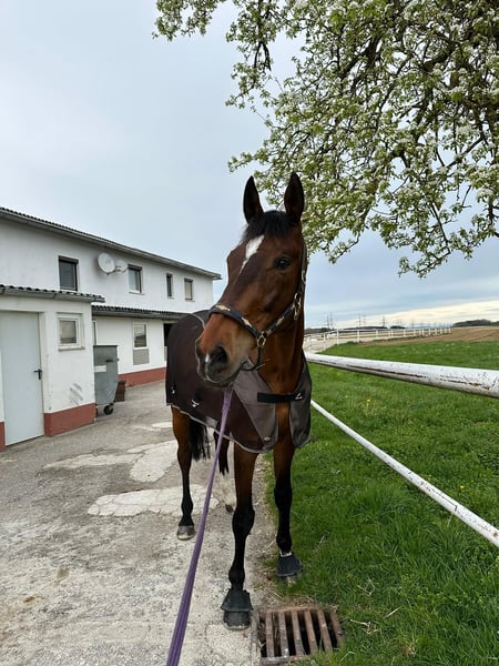 Aus familiären Gründen gebe ich meinen großrahmigen Wallach aus bewährter Springabstammung (Andiamo x Lupicor) ab. Er ist 11 Jahre alt, misst 186 cm und überzeugt mit einem menschenbezogenen, sensiblen und zugleich verspielten Wesen. Er verfügt über eine solide Grundausbildung und wurde im Parcours bis 105 cm vorgestellt. Im Umgang zeigt er sich traktor- und verkehrssicher, ist jedoch in neuen Situationen sensibel, dabei aber in der Regel gut handelbar. Aufgrund seines Formats und Temperaments ist er kein Pferd für Anfänger oder Kinder, sondern sucht eine erfahrene, ruhige und klare Bezugsperson. Mit der richtigen Führung erhält man einen leistungsbereiten Partner für den ambitionierten Freizeitsport. Derzeit befindet er sich nach einer verletzungsbedingten Pause im konsequenten und kontrollierten Wiederaufbau. Das Springen macht ihm sichtlich Freude – er ist weder guckig bei Planken noch bei Wasser und zeigt viel Motivation, wenn es abwechslungsreich wird. Dennoch ist eine schwere Belastung oder Turnierreiten vermutlich nicht möglich. Er steht in einer Paddockbox mit ganztägigem Außenzugang und verbringt im Sommer 24 Stunden auf dem Wiesenpaddock. Diese Haltung tut ihm sehr gut und sollte möglichst beibehalten werden. Hänger sowie gesamtes Zubehör können auf Wunsch ebenfalls übernommen werden. Standort Schiedlberg (OÖ)