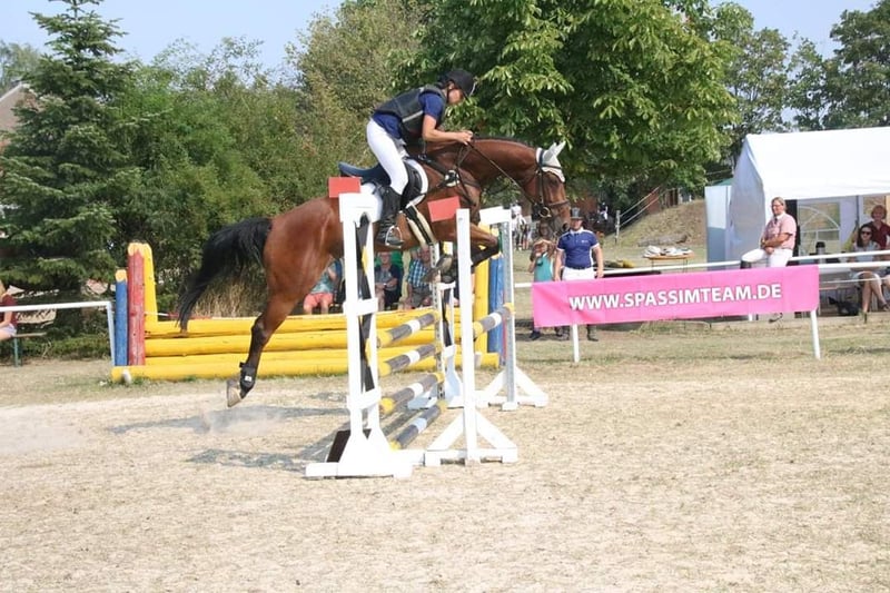 Alter: 11 Jahre Stockmaß: ca. 1,68 m Abstammung / Stammbaum: For Passion Dive Z x Jolin Großvater: For Pleasure - Olympiasieger, viele große Turniererfolge, sehr erfolgreiche Zuchtlinie, bedeutender Springpferdevererber Ausbildung: Springen bis L, Turniererfahrung vorhanden - 2019: Platz 2 Springpferdeprüfung - 2019: Platz 4 Eignungsprüfung - Top geeignet für weiteres Springtraining, Turniersport und langfristige Partnerschaft Charakter: - Anspruchsvoll, feinfühlig, charakterstark - Benötigt erfahrenen Reiter, der seine feine Art erkennt und respektiert Besonderheiten / Handling: - Schmiede- & verladefromm - Gesund - Sicher im Gelände - Fit für Training, Springen und Turniersport - Ideal für ambitionierte Reiter, die Blut und Charakter schätzen Turnierpause: Seit 2019 nicht auf Turnieren - nicht wegen Leistung oder Gesundheit, sondern aus persönlichen Entscheidungen des Besitzers. Voll einsatzbereit, fit und motiviert. Warum Onyx? - Spitzenblut, Sportlichkeit und Charakter vereint - Ideal für Reiter, die Feinfühligkeit, Partnerschaft und langfristige Zusammenarbeit schätzen - Anspruchsvolles, lohnendes Sportpferd für Turniersport Kontakt: Nachricht über Portal oder direkt an 015204857375