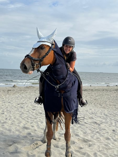 Oreo ist ein arbeitswilliges Pferd, mit dem man viel anstellen kann. Am liebsten springt er über Parcours – das macht er mit großer Freude und Energie. Der Grund für den Verkauf ist, dass ich ihm diese Freude nicht bieten kann. Daher sucht er einen Reiter mit entsprechenden Ambitionen. Ich suche einen sehr guten Platz für Oreo, denn er ist es mehr als wert. Neben dem Springen ist es kein Problem, mit Oreo Ausritte zu machen, sei es alleine oder in der Gruppe. Er steigt ohne Zweifel in den Anhänger ein und lässt sich auch allein problemlos verladen. Er war bereits häufig auf fremdem Gelände unterwegs und hat kürzlich mit WE-Unterricht begonnen. Das nimmt er sehr gut auf. Auf Wunsch sind Videos vom Springen verfügbar. Beim Kauf im Jahr 2024 ist Oreo klinisch untersucht und ohne Befunde. Wie bereits erwähnt, kann ich Oreo nicht die Bedingungen bieten, die er braucht, weshalb mir die Entscheidung zum Verkauf schwer fällt. P.S.: Der Hufschmied freut sich immer, Oreo zu beschneiden. Sehr brav ☺️