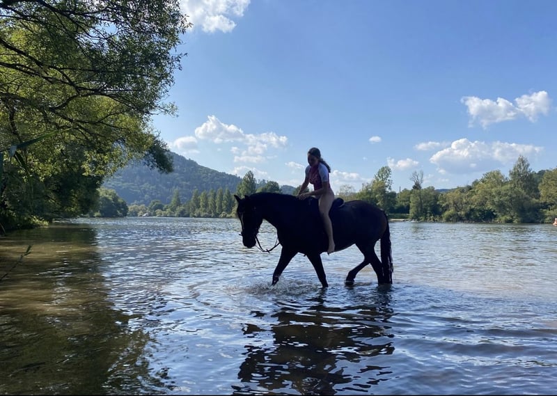 Kody – My Heart Horse, Looking for a Loving New Home Kody is a very special gelding who turned 14 years old in September. With an approximate height of 15.3 hh, he is manageable and pleasant to ride. His passport lists him as a Belgian Warmblood, but I suspect that this breed is either not represented or only to a small extent – he is a beautiful mix with a lot of presence. In handling, Kody is an absolute gem: whether groundwork, liberty work, handwork, or trail riding – he always participates enthusiastically, remains attentive, respectful, and eager to learn something new. In the field, he is completely reliable, both alone and in a group, and is experienced in long-distance riding. In dressage, Kody puts in a lot of effort to do everything correctly. However, he requires a sensitive and consistent rider who can provide him with security. He loves jumping above all else: he really comes alive and has great fun doing it! We also regularly included small jumps in our trail rides – making him an ideal horse for those starting out in show jumping. Kody is very kid-friendly: I have occasionally had my younger sisters ride him. For regular work, however, he should be in more experienced hands so he can reach his full potential. Stabling & Health: Kody currently lives in a paddock with a mixed herd and feels very comfortable there. In his previous home, he was kept in a box stall with a large paddock and his own pasture – he is adaptable and easy to rehome. He is healthy, shoe- and loading-friendly. His teeth were floated last year, he is vaccinated for competition, and he received a disease test five months ago. There are no illnesses or findings, and a pre-purchase examination (PPU) can of course be arranged. I am only selling Kody because I am unfortunately no longer able to meet his health needs. Due to my health reasons, he has been ridden less over the past few months, but he takes this in stride. I focus a lot on ground work and variety to keep him engaged. With regular training, he quickly regains fitness and muscle. It is very important to me that he finds a loving new home where he will be supported and continue to bring as much joy as he has given me over the years.