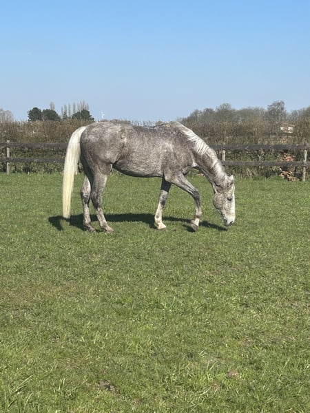 Mon Dieu van ‘t Kattekwaad Na heel veel wikken en wegen heb ik besloten een nieuwe thuis te zoeken voor mijn grote vriendelijke reus. Mon Dieu is een hele lieve maar onzekere ruin en heeft dus nood aan iemand die rustig met hem kan omgaan. Onder het zadel zet hij geen stap verkeerd maar kan wel wat kijkerig zijn. Er werd enkele maanden geleden spat bij hem vastgesteld (beide achterbenen, maar enkel 1 been werd behandeld). Hij heeft hier in het dagelijkse leven geen last van, maar kan uiteraard enkel nog recreatief gereden worden. Hij doet ook heel graag grondwerk en kan hier zeker veel in groeien. De ideale plek voor Dieu is: - bij voorkeur 24/7 buiten (of enkel ‘s nachts op stal) - een stabiele kudde waar hij niet alleen komt te staan - iemand die meer belang hecht aan grondwerk en wandelingen dan zwaar pistewerk