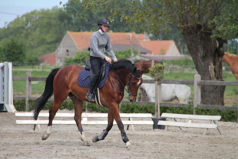 Vaya is een lieve, 4jarige ruin met veel potentie van ongeveer 1m60 (niet officieel gemeten). braaf in omgang en heeft een groot karakter. in het rijden nog groen en heeft nood aan een ervaren ruiter. heeft wedstrijdervaring tot 90cm en loopt makkelijk B proefje is verkeersmak, makkelijk te laden, flink bij hoefsmid, tandarts... is in orde met ontworming, vaccinaties, geen stalgebreken. was in 2023 goedgekeurd. geen handelaars of maneges. staat gestald in damme