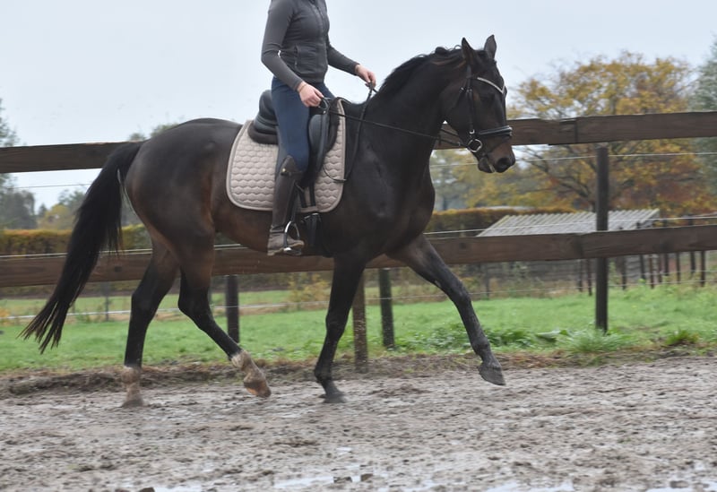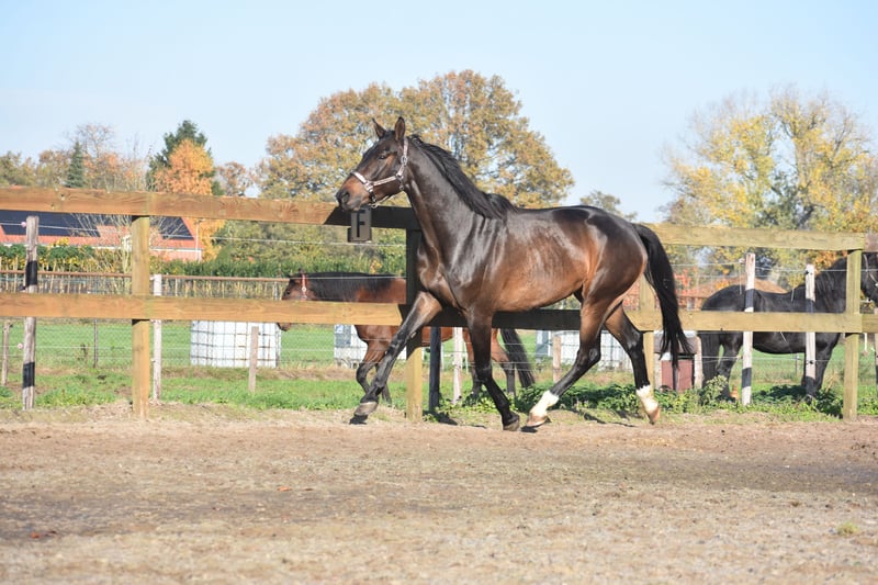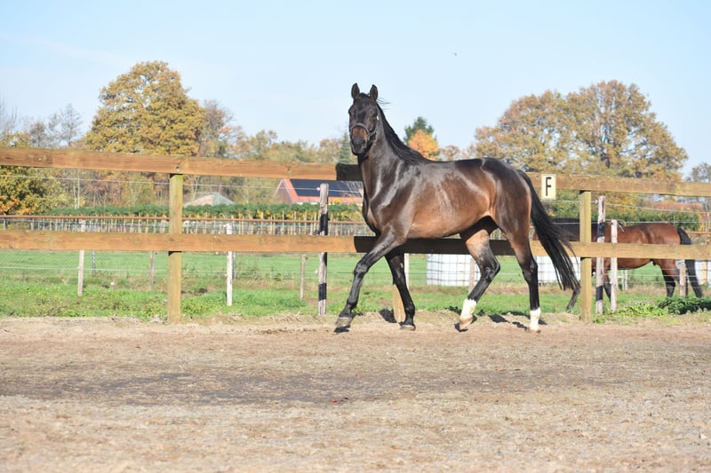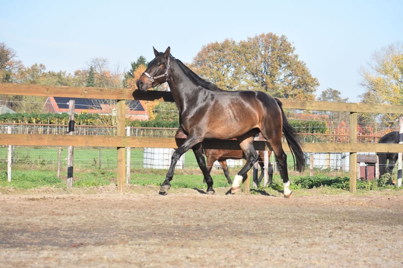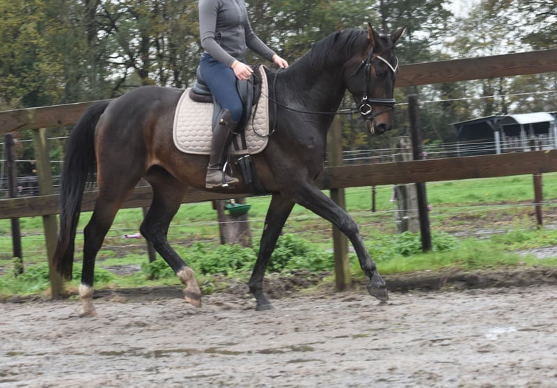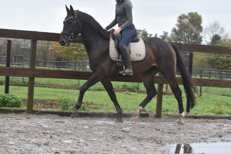 Meet Valesco van de Melane. We had the pleasure of acquiring him directly from the breeder, together with his stablemate Voltaire van de Melane. What a gem! A stunning, black-brown 4.5-year-old gelding approximately 1.68 m tall, with an impressive pedigree: Lavillion x Akribori x Ulft. A perfect combination for both dressage and show jumping. Valesco is truly a sweetheart of a horse. In the stable, he captures everyone's attention with his charming presence and thoroughly enjoys a cuddle. Under saddle, he demonstrates his willingness to work and his calm, sensible nature. He is very pleasant to ride and offers his rider a good feel in the hand. He has been radiographically and clinically examined, with sound legs, back, and neck. With his talent and versatility, Valesco offers many possibilities. He is a horse with a bright future, suitable for both sport (dressage and jumping) and recreational riding. He is well-versed in traffic and trailer loading, both now and in the past. Very social and free of any (stable) vices. Valesco is in excellent health and moves with great cadence, balance, and freedom. Price: €9,750 – including brand saddle and bridle.