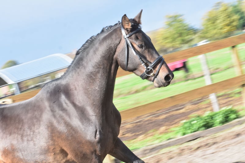 Valesco von de Melane, direkt vom Züchter, durfte ich ihn zusammen mit seinem Stallkollegen Voltaire von de Melane übernehmen. Was für ein Juwel! Ein wunderschöner, schwarz-brauner 4,5-jähriger Hengst von ca. 1,68 m mit beeindruckender Abstammung: Lavillion x Akribori x Ulft. Eine perfekte Kombination für sowohl Dressur als auch Springen. Valesco ist wirklich ein Schatz unter den Pferden. Im Stall zieht er mit seinem charmanten Auftreten alle Blicke auf sich und genießt ausgiebig Streicheleinheiten. Unter dem Sattel zeigt er seine Arbeitswilligkeit und sein ausgeglichenes Wesen. Er ist sehr angenehm zu reiten und vermittelt dem Reiter ein gutes Gefühl in der Hand. Röntgenologisch und klinisch bestens geprüft, sowohl die Beine als auch Rücken und Hals. Mit seinem Talent und seiner Vielseitigkeit eröffnen sich für Valesco zahlreiche Einsatzmöglichkeiten. Ein Pferd mit viel Zukunft, geeignet für den Sport (Dressur + Springen) sowie für die Freizeitreiterei. Er ist hier und zuvor gut im Straßenverkehr sowie beim Trailer-Transport vertraut. Sehr sozial. Frei von (stall)bedingten Gebrechen. Valesco ist kerngesund und kann sich hervorragend bewegen – mit viel Takt, Balance und Raumgriff. Preis: 9.750 € inklusive Marken-Sattel und kompletten Reithalfter.