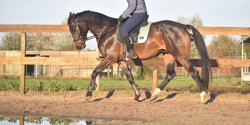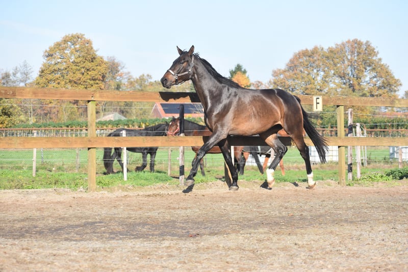 Meet Valesco van de Melane. We had the opportunity to acquire him directly from the breeder, together with his stablemate Voltaire van de Melane. What a gem! A stunning, black-brown 4.5-year-old gelding approximately 1.68 m tall, with an impressive pedigree: Lavillion x Akribori x Ulft. A perfect combination for both dressage and show jumping. Valesco is truly a sweetheart of a horse. In the stable, he attracts attention with his charming demeanor and thoroughly enjoys a cuddle. Under saddle, he demonstrates his willingness to work and his calm, sensible nature. He is very pleasant to ride and gives his rider a comfortable feeling in the hand. He has been radiographically and clinically approved, with healthy legs, back, and neck. With his talent and versatility, Valesco can go in multiple directions. A horse with a bright future, suitable for both sport (dressage + jumping) and recreational riding. He is well-versed in traffic and trailer loading, both currently and previously. Very social. Free of any (stable) vices. Valesco is in excellent health and moves with great cadence, balance, and freedom. Price: €9,750, including a brand-name saddle and bridle.