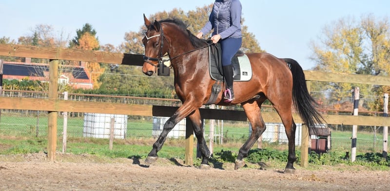We had the opportunity to acquire him directly from the breeder, together with his stablemate Valesco vd Melane. Meet Voltaire van de Melane, an impressive and elegant 4.5-year-old gelding approximately 1.75 m tall, with an excellent pedigree: Querido VG x Concorde Z x Tresor D 12. Click HERE for his papers. A horse with a bright future, suitable for both sport (dressage + jumping) and recreational riding. Voltaire is beautifully built and possesses a lot of presence and suppleness. He is a friendly, cheerful, and positive horse. Under saddle, he demonstrates his natural balance and cooperative character. He seeks a good connection with the rider and is a pleasure to ride. He is well-behaved in traffic and loading, both here and previously. Very social. Free of any (stable) vices. Voltaire is in excellent health and moves exceptionally well, with a lot of cadence, balance, and freedom of movement. He has been radiographically and clinically approved, with healthy legs, back, and neck. Price: €9,750 including a brand-name saddle and bridle, complete.