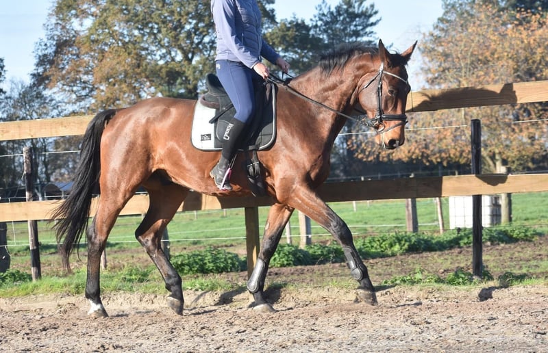 Rechtstreeks van de fokker mochten wij hem overnemen, samen met stalgenootje Valesco vd Melane. Ontmoet Voltaire van de Melane, een imposante en elegante 4,5-jarige ruin van ca. 1.75m, met een uitstekende afstamming: Querido VG x Concorde Z x Tresor D 12. Klik HIER voor zijn papier. Een paard met een mooie toekomst , geschikt voor zowel sport ( dressuur+ springen) als recreatie. Voltaire is prachtig gebouwd en beschikt over veel uitstraling en souplesse. Het is een vriendelijk, vrolijk en positief paard. Onder het zadel laat hij hier zijn natuurlijke balans en meewerkende karakter zien. Hij zoekt fijn de verbinding met de ruiter en is prettig te rijden. Hij is hier en voorheen goed verkeers,- en trailermak. Heel erg sociaal. Vrij van ( stal) gebreken. Voltaire is kerngezond en kan enorm goed bewegen, met veel cadans , balans en ruimte. Hij is röntgenologisch en klinisch goedgekeurd, zowel de benen als rug en hals. € 9750,- incl. merkzadel en hoofdstel compleet.