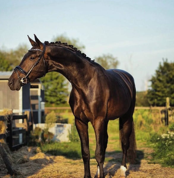 Gelding — Fontaine tn x san remo Year: 2022 Height: 183 cm Color: Bay Breed: Sport horse Training level: L Competition level: L Flying changes: No Amateur friendly: Yes — very easy, suitable also for less experienced riders Impressive gelding with exceptional presence and maturity. Judges describe him as looking and moving like a 6-year-old, with clear natural ability for collection and higher work in the future. He shows strong focus in the ring and even improves his concentration during competitions. Very easy in handling and uncomplicated under saddle. Not spooky at all, calm in different environments, and confident at shows. A tall, powerful horse with clear potential and a good mindset for sport. Country: Netherlands