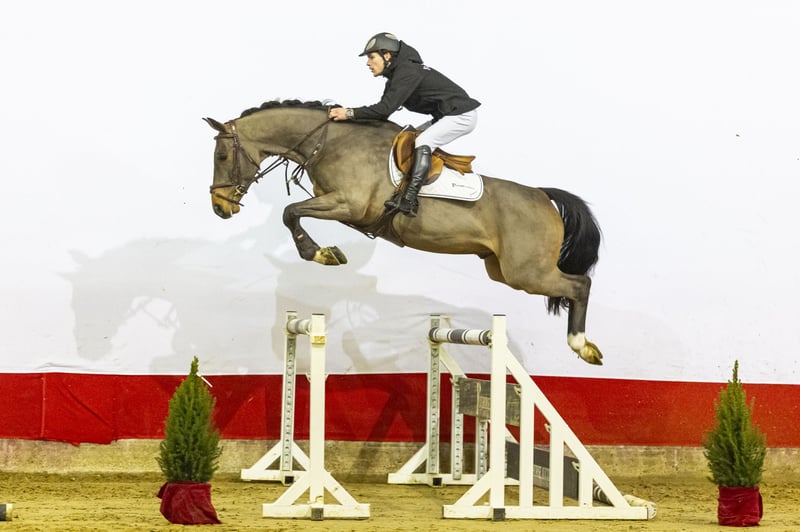 Vamore van de Noordheuvel is a horse that clearly combines quality and mentality. He exhibits a distinct Heartbreaker-type, with a beautiful conformation, a strong front, and an attractive presence. His neck and frame give the rider a secure and comfortable feeling. In his work, he demonstrates a very good attitude and a strong willingness to perform. Over fences, Vamore shows his quality. He jumps with scope, approaches fences confidently, and displays a good take-off. His mentality is outstanding: he wants to excel and jumps with overview. He is easy and pleasant to handle. Additionally, he has good basic gaits, with a correct trot and a balanced canter. Thanks to his movement and appearance, we believe he would also be suitable for dressage, making him interesting for multiple disciplines. His sire, Mandoro ’P’ (Emerald van ’t Ruytershof x Andora P), competed at 1.50m level and combines the top bloodlines of Emerald van ’t Ruytershof (1.60m, Olympic level) with a strong performance line. Emerald is renowned for producing international top showjumpers with scope, reflexes, and mentality. His dam, Ti Amore (Heartbreaker x Doree), competed at 1.20m level and carries the influential blood of Heartbreaker, one of the most important sires in modern showjumping. From this direct damline comes Qadir van de Noordheuvel (by Guidam Sohn), who competed at 1.35m. The second dam, Doree (Ramiro Z), competed at 1.10m and hails from a very strong performance family. This line has produced, among others: - Loreehn (Grandeur) – 1.60m showjumping - Aimy D (Alexis Z) – 1.60m showjumping - Conca d’Or Z (Carthago) – 1.40m, AES/ZVCH-approved stallion The third dam, Wesselina (Heidelberg), is a keur and preferent mare and forms the foundation of this damline, which includes multiple horses competing at 1.30m to 1.60m levels, as well as approved stallions. Vamore van de Noordheuvel combines presence, scope, and a proven sport pedigree. A horse with a good mentality, quality gaits, and jumping ability, suitable for riders seeking a versatile and attractive sport horse.