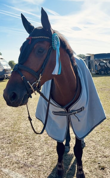 Bij deze bied ik mijn Ubocus van het Gersthof (Up) te koop aan. Up is nu 5 jaar en is rond de 1.61m hoog. Een fijn en knap paard om te zien! Paard laat goede sprong zien en is hierin erg voorzichtig. Hij heeft een zacht mondje en word hier ook met zachte hand gereden, is lekker voorwaarts van zichzelf dus niet nodig om met veel been te rijden. Springt makkelijk wissels. Paard loopt sinds het outdoor seizoen 100cm en heeft hierin al veel 0 rondjes gelopen + prijzen. Hiervoor veel 80/90 cm gelopen en hierin ook bijna alleen maar foutloze rondes en veel in de prijzen. Is ook op meerdaags geweest, doet dit braaf. Hij gaat regelmatig mee naar het bos en doet dit braaf zowel alleen als in de groep. Is verkeersmak. Up is vrij van gebreken, loopt zo de trailer / wagen op en is braaf onderweg. Altijd netjes geënt en ontwormd. Braaf bij de smid, op stal, aan de hand en in de wei. Gezien zijn leeftijd en voorzichtigheid niet geschikt voor de echt beginnende ruiter. Ubocus heb ik met 3,5 jaar gekocht en was toen net een paar weken zadelmak. Geschiedenis bekend. In september 2023 goedgekeurd, overkeuren mag k.k. Röntgenfoto’s aanwezig. Video’s en meer info beschikbaar via whatsapp: 0610961768
