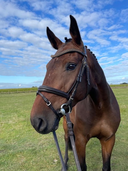 Zum Verkauf steht ein 6 Jähriger, 165cm großer Wallach. Er ist siegreich bis L-Dressur und platziert in A-Springen und A-Gelände. Da wir ihn uns eher als dressurbetonten Allrounder, wie als Vielseitigkeitspferd vorstellen können, sucht er nun ein neues Zuhause. Er springt sicher und gerne, zeigt aber mehr Potential im Dressurbereich. Momentan wird er dressurmäßig weiter gefördert und lernt seine ersten M-Lektionen. Er hat einen ganz lieben Charakter und möchte gerne gefallen. Er kennt ausreiten alleine und in der Gruppe und ist sehr unkompliziert im Umgang. Aktuelle Röntgenbilder liegen vor.