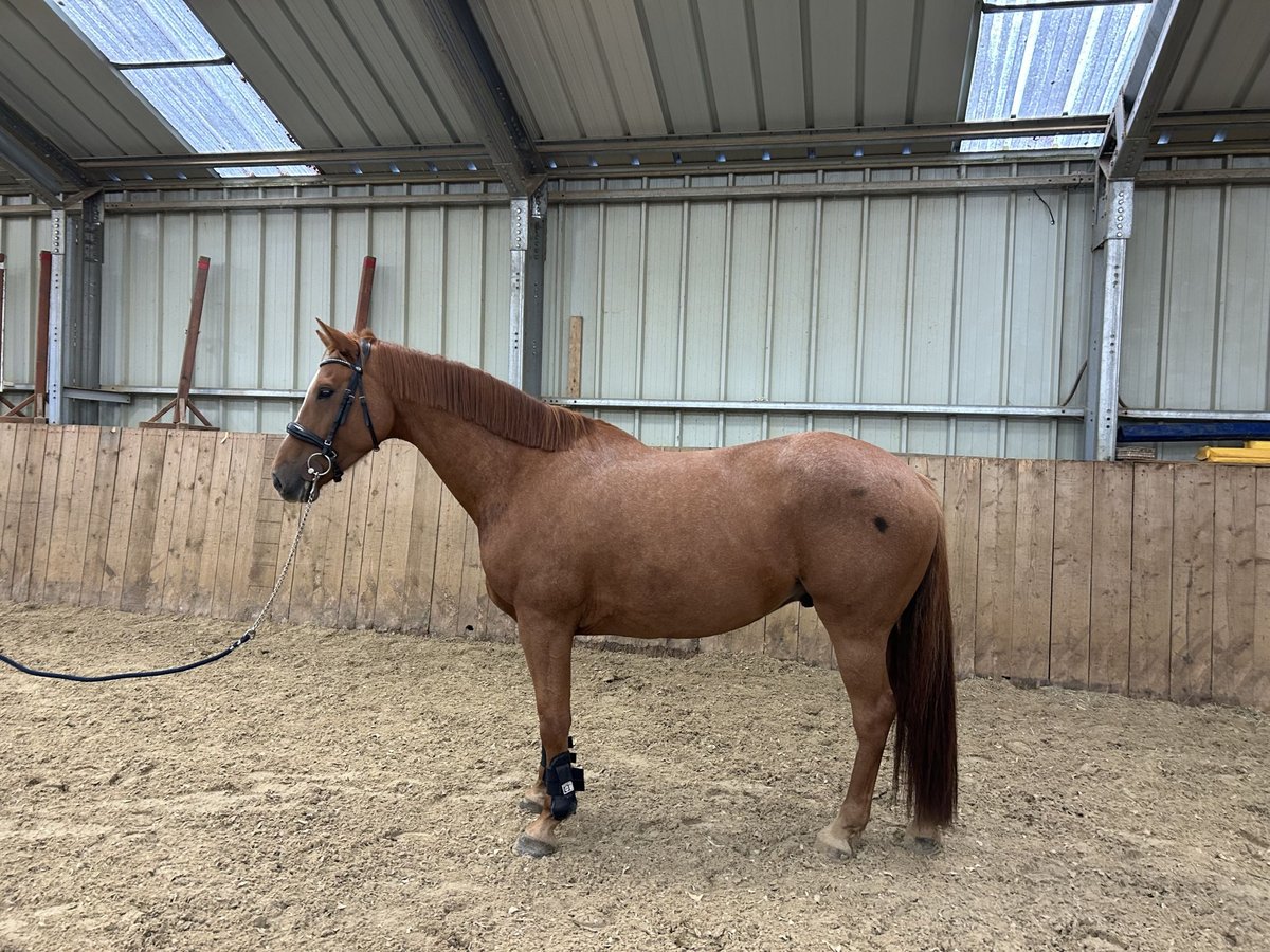 7-year-old gelding by Chapper x Flamenco de Semilly 📏 Approximate height: 16.1 hh 🎯 Ideal for ambitious amateurs A very handsome 7-year-old gelding, spirited and with an excellent mentality. He comes from a high-quality pedigree and combines good conformation, beautiful movement, and sporting potential. He is slightly behind in training. Last year, he participated in his first competitions (90 cm – 1 m) with only a few starts. 👉 A promising young horse, ready to develop further with his rider.