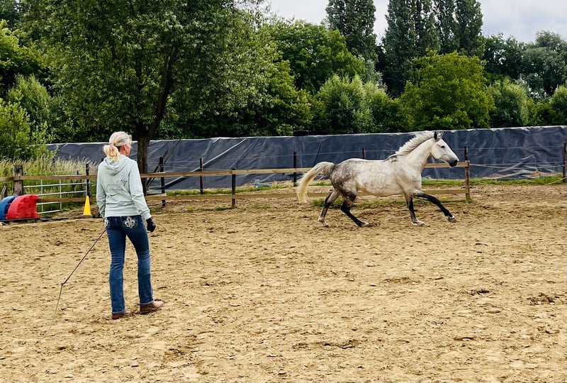 Beschreibung Fons ist ein wunderschöner, sensibler und außergewöhnlich intelligenter Wallach, der ursprünglich aus der Springwelt stammt. Er ist nicht mehr für den Springsport geeignet und fühlt sich deutlich wohler in einer ruhigen, freizeitreitbezogenen Umgebung. Er liebt Abwechslung, Freiheit und mentale Herausforderungen. Sein (erster) Besitzer sucht ein neues, dauerhaftes und gutes Zuhause für ihn. Diesen Sommer hat er intensiv Bodenarbeit gemacht, mit sehr schönen Ergebnissen. Er lernt außergewöhnlich schnell und arbeitet gerne mit einer ruhigen, klaren und selbstsicheren Person zusammen. Er wird als Freizeitpferd verkauft, ideal für Bodenarbeit, Freiheitsdressur und entspannte Ausritte. Nicht für den Sport oder Wettkämpfe! Charakter Knuddelbär: Lieb, ehrlich und menschenbezogen Viel Energie / temperamentvoll, aber gut kontrollierbar mit Vertrauen Sensibel, intelligent und lernwillig Liebt klare Kommunikation und eine sanfte Hand Denkt gerne mit und sucht Verbindung Lernpunkte Es gibt noch einige Dinge, bei denen sich Fons manchmal unsicher fühlt, was wir gerne nutzen möchten, um gemeinsam mit seinem neuen Besitzer eine starke Bindung aufzubauen. Geeignet für: Erfahrene Reiter mit sanfter Hand und klarer Vorgehensweise Jemand, der Bodenarbeit, Freiarbeit und mentalen Kontakt schätzt Erstmalig: Jemand, der viele Ausritte in der Natur macht Perfekt, um eventuell nur Bodenarbeit mit Fons zu machen (z. B. für jemanden, der nicht mehr reiten kann oder möchte) Jemand, der ruhig und bewusst arbeitet Ein Besitzer, der Zeit, Ruhe und Struktur bieten kann Nicht geeignet für Anfänger oder sportlich orientierte Reiter! Unterbringung (sehr wichtig): Fons benötigt Bewegung, um seine Gelenke geschmeidig zu halten (Arthrose im rechten Hinterknie), damit er gesund bleibt und natürlich leben kann: 24/7 Weidegang mit Offenstall, oder Paddock Paradise mit täglichem Weidegang Mindestens ein weiterer Pferdefreund, idealerweise eine Herde Viel Bewegung und mentale Anreize Nicht geeignet für Boxenhaltung! Er läuft barhuf gut und ist nicht beschlagen. Gesundheit: Fons hat in der Vergangenheit leichte Knieprobleme (Arthrose rechts) entwickelt, weshalb intensives Springen für ihn nicht geeignet ist. Er kompensiert manchmal diagonal links, was vorne leichte Belastung verursachen kann. Ruhige Arbeiten wie Bodenarbeit, Spaziergänge und Ausritte sind besonders passend und helfen, seine Gelenke geschmeidig zu halten. Warum Fons so besonders ist: Elegantes Erscheinungsbild mit sanftem Charakter Intelligenter „Denker“, der wirklich Kontakt sucht Arbeitet gerne und lernt unglaublich schnell Wird ein goldener Partner für die richtige Person Interesse? Fons steht in Vremde (BE) und ist für 3.250 € inklusive Bodenarbeitsstunden nach Vereinbarung zu verkaufen. Videos & zusätzliche Fotos auf Anfrage erhältlich. Kontaktieren Sie uns für ein Kennenlernen mit Fons.