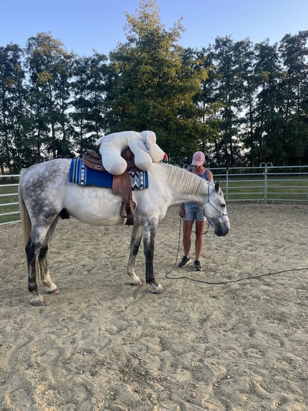 Opis Fons to piękny, wrażliwy i niezwykle sprytny wałach, który wywodzi się z świata skoków przez przeszkody, lecz nie jest już odpowiedni do sportu skokowego i wyraźnie lepiej czuje się w spokojnym, rekreacyjnym otoczeniu. Uwielbia różnorodność, wolność i wyzwania mentalne. Jego (pierwszy) właściciel poszukuje nowego, stałego i dobrego domu dla niego. Latem Fons intensywnie pracował na ziemi, osiągając bardzo dobre rezultaty. Uczy się wyjątkowo szybko i chętnie współpracuje z osobą, która jest spokojna, jasna i pewna siebie. Sprzedawany jest jako koń rekreacyjny, idealny do pracy na ziemi, liberty dressage i relaksujących przejażdżek na zewnątrz. Nie do sportu ani zawodów! Charakter Przytulak: łagodny, szczery i nastawiony na kontakt z człowiekiem Wiele energii / gorący, ale dobrze kontrolowany dzięki zaufaniu Wrażliwy, inteligentny i chętny do nauki Lubi jasną komunikację i delikatną rękę Chętnie myśli razem i szuka więzi Obszary do rozwoju Czasami Fons czuje się niepewnie w kilku sytuacjach, co chcielibyśmy wykorzystać, aby wspólnie z nowym właścicielem zbudować silną więź. Dla kogo: Zaawansowany jeździec z delikatnym kontaktem i jasnym podejściem Osoba, która lubi pracę na ziemi, liberty i kontakt mentalny z końmi Pierwsza opcja: ktoś, kto często jeździ na przejażdżki w naturze Idealny do samodzielnej pracy na ziemi z Fons (np. jeżeli ktoś nie może lub nie chce już jeździć) Osoba, która pracuje spokojnie i świadomie Właściciel, który może zapewnić czas, spokój i strukturę Nie dla początkujących ani jeźdźców ukierunkowanych na sport! Zakwaterowanie (bardzo ważne): Fons potrzebuje ruchu, aby jego stawy były elastyczne (artroza w prawej tylnej kolanie), co pozwala mu zachować zdrowie i naturalny tryb życia: - Całodobowe wypasanie na pastwisku z dostępem do stajni lub - Paddock Paradise z codziennym wypasem Co najmniej jednego innego towarzysza, najlepiej stada Dużo ruchu i wyzwań mentalnych Nie nadaje się do trzymania w boksie! Chodzi dobrze na gołych kopytach i nie jest okuty. Zdrowie: Fons w przeszłości miał lekkie problemy z kolanami (artroza w prawej nodze), co wyklucza intensywne skoki. Czasami odczuwa dyskomfort po stronie lewej, co może obciążać przednie kończyny. Spokojne prace, takie jak praca na ziemi, spacery i przejażdżki na zewnątrz, są dla niego bardzo odpowiednie i pomagają utrzymać jego stawy w dobrej kondycji. Dlaczego Fons jest tak wyjątkowy: Elegancki wygląd i delikatny charakter Inteligentny „myśliciel”, który naprawdę szuka kontaktu Chętnie pracuje i uczy się niesamowicie szybko Może stać się złotym partnerem dla odpowiedniej osoby Zainteresowany? Fons znajduje się w Vremde (BE) i jest na sprzedaż za 3250 € wraz z sesjami pracy na ziemi po wcześniejszym umówieniu. Dostępne filmy i dodatkowe zdjęcia na życzenie. Skontaktuj się, aby poznać Fonsa.