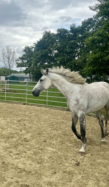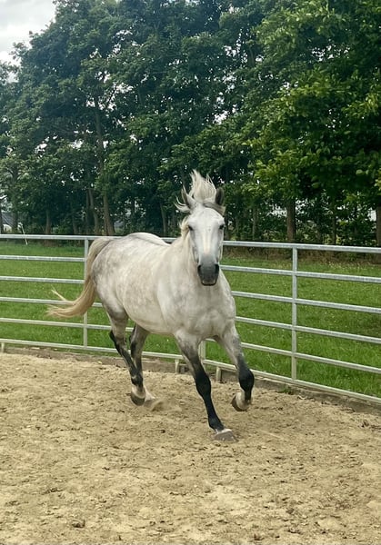 Description Fons is a stunning, sensitive, and exceptionally intelligent gelding who originally comes from the show jumping world. He is no longer suitable for competitive jumping and clearly thrives better in a calm, recreational environment. He enjoys variety, freedom, and mental stimulation. His (first) owner is seeking a new, permanent, and loving home for him. This summer, he underwent intensive groundwork training with excellent results. He learns exceptionally quickly and works gladly with someone who is calm, clear, and confident. He is sold as a leisure horse, ideal for groundwork, liberty dressage, and relaxed outdoor rides. Not suitable for sport or competition! Character Cuddle buddy: gentle, honest, and people-oriented Full of energy / hot, but well-controlled with trust Sensitive, intelligent, and eager to learn Appreciates clear communication and a gentle hand Enjoys thinking along and seeks connection Learning points There are still a few areas where Fons sometimes feels unsure, and we would like to use this as an opportunity to build a strong bond with his new owner. Suitable for: - Advanced rider with a soft hand and clear approach - Someone who enjoys groundwork, free work with horses, and mental contact - First-timer: someone who takes many outdoor rides in nature - Perfect for doing groundwork with Fons alone (for a rider who can no longer or does not want to ride) - Someone who works calmly and consciously - An owner who can provide time, patience, and structure Not suitable for beginners or sport-oriented riders! Housing (very important): Fons needs movement to keep his joints flexible (arthritis in the right hind knee), so he remains healthy with a natural lifestyle: - 24/7 pasture turnout with an open stable, or - Paddock Paradise with daily turnout At least one other horse companion, preferably a herd Plenty of movement and mental stimulation Not suitable for box confinement! He is barefoot and not shod. Health: Fons has developed mild knee issues in the past (arthritis in the right knee), making intensive jumping unsuitable for him. He sometimes compensates diagonally to the left, which can cause light strain in the front. Gentle work such as groundwork, walking, and outdoor rides are very suitable and help keep his joints flexible. What makes Fons so special: Elegant appearance with a gentle character An intelligent ‘thinker’ who truly seeks connection Works eagerly and learns incredibly fast Will become a golden partner for the right person Interested? Fons is located in Vremde (BE) and is for sale for €3,250, including groundwork sessions by appointment. Videos & additional photos available upon request. Contact us to meet Fons.