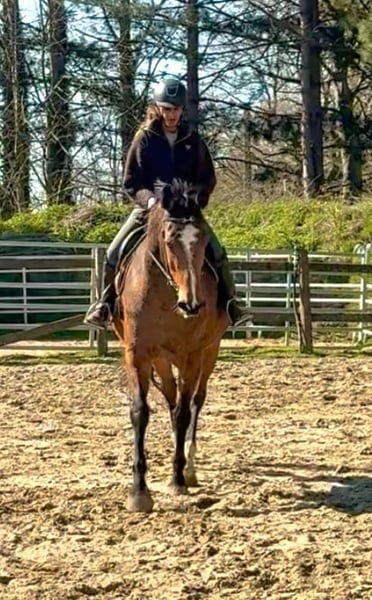 Giant - Sturdy - School Horse ✨ Gentle 11-year-old mare, approximately 175 cm tall! Dutch Warmblood mare Sire: Va Vite - Heartbreaker Dam: Massimo - Cassini I A lovely all-rounder: rides nicely in dressage, can jump, and is comfortable on the trail — traffic safe. She has been standing still for a few years as she has had two foals. We are gradually resuming her training, and she will join in on trail rides. A nice school horse that knows her work. Reason for sale: reduction of horses. 0032496619693 Bornem, Belgium www.stalcloverhof.be