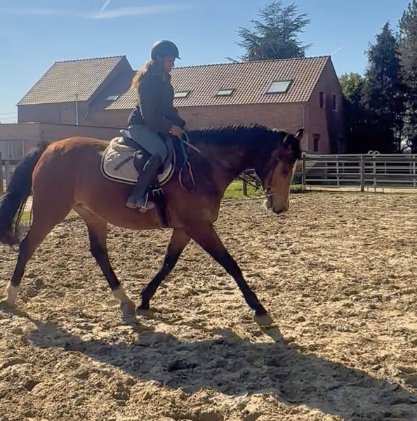 Groot - Stevig - Leerpaard ✨ Brave toffe merrie van 11jaar en meet +~175cm! Bwp merrie V: Va Vite - Heartbreaker Vm: Massimo - Cassini I Een leuke allrounder : loopt netjes dressuurmatig, kan springen kan op wandel - verkeersmak. Heeft nu enkele jaren stilgestaan omdat ze 2 veulens heeft gehad. Wij nemen het rijden terug rustig op en zal meelopen op wandelingen. Leuk leerpaard die haar werk kent. Reden: Vermindering paarden 0032496619693 Bornem Belgie www.stalcloverhof.be