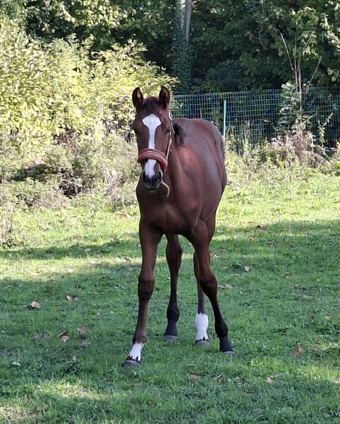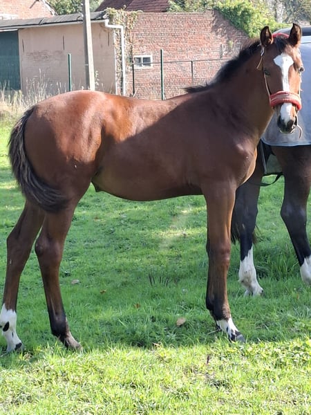 Super chic mare for sale: Check Me Out van de Wildebeek Special star, by De Corlato out of Prinses Z. Gallops and moves very well, both in leg use and through the back. She descends from a highly proven bloodline consisting solely of sport horses. She has several sisters competing at the highest levels (1.50 m, twice 1.45 m, 1.35 m, Cyclus, etc.). Her mother competed in sport in the UK, which, combined with her pedigree, makes her a top prospect for higher-level sport in the future or as a broodmare. Expected height around 1.70 m (16.1 hh). Can leave her mother at the end of September.