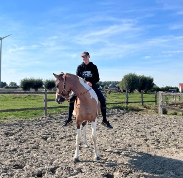 Super brave 3,5 jaarege merrie te koop. Ze is voorlopeg dragteg. We zijn nog maar net begonnen met het springen en ae pakt het super goed op, Ze is super braaf in de omgang als bij de vearts en hoefsmit. Is geshikt voor beginners als gevordere ruiters.