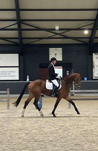 For sale: 6-year-old mare with competition experience (WVUR dressage) This talented and reliable 6-year-old mare, standing at 1.70 meters at the withers, is ready to progress further in the sport. She knows the basic gaits — walk, trot, and canter — and masters all dressage exercises expected for her age. Currently, work is underway to refine her flying changes. She has competition experience in the 6-year-old category (WVUR dressage) and demonstrates great talent, a strong work ethic, and a pleasant temperament. In handling, she is well-behaved, easy to manage, and calm on unfamiliar terrain. She also enjoys relaxed walks outside the arena. Transporting her in a trailer poses no problem. In short: an honest and willing horse for someone seeking a reliable partner with potential for the future. Height at the withers: 1.70 m Asking price: €16,000 For more information or to arrange a viewing, please feel free to contact us at 0499/22.33.45.