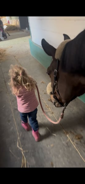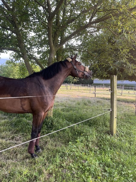 Leisure Partner with Potential Our 7-year-old mare is looking for a new home where she can find her place as a loyal companion for leisure riding. She is absolutely well-behaved in handling, very people-oriented, and consistently reliable and calm in the terrain. She loves children but is not a typical children's riding horse. Under saddle, she is pleasant to ride and has a beautiful, natural movement. She has been occasionally presented at competitions—always with experienced riders—since she needs a rider who is calm, consistent, and sensitive. Like many mares, she has her own mind and requires a trusting partner who offers patience, confidence, and enjoys growing together. With the right person, she is an absolute sweetheart who gives her best. Thanks to her excellent pedigree and successful siblings, she could also be of interest for breeding. Discipline: leisure riding, jumping, possibly breeding Age: 7 years Temperament: well-behaved, people-oriented, sensitive, independent Suitable for: experienced leisure and trail riders with a gentle touch