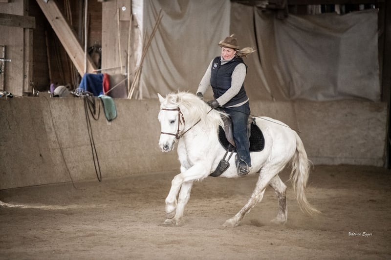 Gaucho du Coeur Rasse: Camargue Pferd Geschlecht: Wallach Alter: 10 Jahre Größe: 1.45 m Gaucho ist ein richtiger Allrounder. Egal ob man ein verlässliches Pferd im Gelände will oder ob man Dressur, Springen oder Working Equitation machen will, mit Gaucho hat man stehts einen willigen, nervenstarken Partner an seiner Seite. Der Wallach ist brav und sehr sympathisch im Umgang. Ist natürlich brav bei allen täglichen Arbeiten, beim Schmied sowie beim Verladen. Rassebedingt und durch seinen starken Körperbau ist er ein Gewichtträger. Im Viereck ist er auf ein gutes A Niveau ausgebildet. Kennt ebenso alle Seitengänge in allen 3 Grundgangarten, reagiert fein an den Hilfen, ist gut zu regulieren und bequem zu sitzen. Der Wallach verfügt über 3 ordentliche Grundgangarten und wäre auch durchaus für Turnierliebhaber geeignet. Im Viereck möchte er mit einer gewissen Korrektheit geritten werden, damit er sein bestes zeigen kann- Lehrpferd. Er verfügt über ein Rassebedingtes schönes Temperament das gut zu regulieren ist aber ihn nicht zur Arbeit bitten lässt. Im Gelände zeigt er sich überaus Nervenstark und trittsicher egal ob alleine oder in der Gruppe. Er ist stehts gut zu regulieren- Spaßpferd mit dem man schöne gemeinsame Stunden verbringen kann. Gaucho ist ein gesundes Pferd mit sehr guten Hufen und läuft deshalb barhuf. Der Hübsche steht im Offenstall in der gemischten Herde und ist Videos kann gerne per WhatsApp geschickt werden