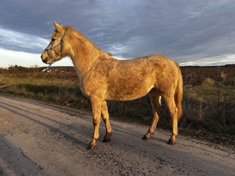 Jument Plein papiers Camargue de 3ans (2022) Maya des Sources, accepte le cavalier au pas et au trot en carrière et extérieur, tourne aux 3 allures en longe et en liberté. Saute en liberté et en longe des petites croix, et passe les barres au sol. Connaît l'extérieur en mains et monter, peut être devant comme derrière. Bon travail de désensibilisation à pied. Toise entre 1m40 et 1m45, Toise exacte sur demande si besoin. Pieds nus Vie en paddock collectif à l'année Ok maréchal Ok tonte Monte en van et camion À jour vaccins, maréchal, ostéo Je m'en sépare car c'est une jument qui a besoin d'un cavalier très présent pour s'épanouir, et je n'ai malheureusement pas le temps de la sortir tous les jours. Je ne suis pas pressée pour qu'elle parte, elle partira uniquement dans une bonne famille cas contraire je la garderais.
