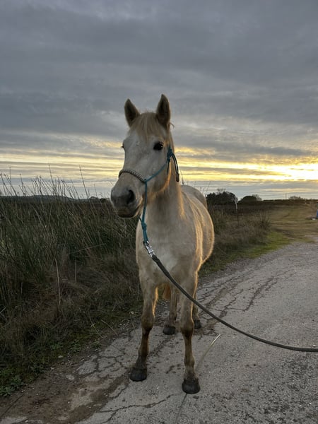3-jährige Camargue-Stute mit vollständigen Papieren (2022) Maya des Sources lässt den Reiter im Schritt und Trab sowohl auf dem Reitplatz als auch im Gelände problemlos reiten, dreht die drei Grundgangarten an der Longe und in Freiarbeit. Sie springt in Freiarbeit und an der Longe kleine Kreuzhindernisse und überquert Bodenstangen. Sie kennt das Gelände sowohl an der Hand als auch unter dem Sattel, kann vorne oder hinten eingesetzt werden. Gutes desensibilisiertes Training am Boden. Schätzung der Widerristhöhe zwischen 1,40 m und 1,45 m, genaue Maße auf Anfrage erhältlich. Barhuf Leben das ganze Jahr über in einer Gemeinschaftsweide Ok für den Hufschmied Ok für das Scheren Verladet in Anhänger und Transporter Aktuell geimpft, entwurmt, beim Hufschmied und Osteopathen in Behandlung. Ich gebe sie ab, weil sie eine sehr engagierte Reiterin braucht, um sich optimal zu entfalten, und leider habe ich nicht die Zeit, sie täglich auszuführen. Ich bin nicht in Eile, sie nur in eine passende Familie abzugeben; andernfalls würde ich sie behalten.