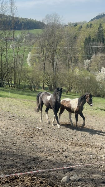 Zum Verkauf steht unser beeindruckender Hengst Chocolate Crisp Oreo. Oreo wurde am 05. Juli 2019 geboren und ist somit 7 Jahre alt. Er hat bereits sieben Fohlen gezeugt, an die er seine hervorragenden Eigenschaften zuverlässig weitergegeben hat. Besonders hervorzuheben sind sein sehr schöner, muskulöser und kompakter Körperbau sowie seine außergewöhnliche Farbe mit seiner attraktiven Scheckung und seine stolze Präsenz. Charakterlich überzeugt Oreo durch seine ausgeprägte Menschenbezogenheit, Neugier und Unerschrockenheit. In der Herde zeigt er sich aufmerksam und beschützend gegenüber seinen Stuten und Fohlen. Oreo wurde ganzjährig im Offenstall gemeinsam mit seinen Stuten und Fohlen gehalten. Aufgrund der Aufgabe unserer Zucht lebt er aktuell im Offenstall zusammen mit seinem Sohn. Bei Interesse oder weiteren Fragen freuen wir uns über Ihre Nachricht.