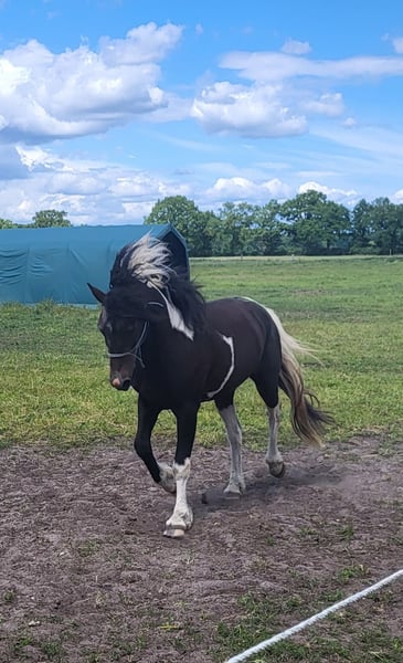 Socke möchte mit dir losziehen und Abenteuer erleben. Habe ihn so ausbilden lassen, dass ihr sofort loslegen könnt. Kinder Hunde Autos, alles kein Thema er ist geländeerfahren, da er das geübt hat. Der Trailplatz ist auch kein Thema. Er hats einfach drauf. Aktuell wächst er wieder. Sein Vater ist 1,52 m und seine Mutter 1,46 m irgendwo dort wird er wohl hinwachsen. Tiefer Rumpf und breiter Rücken decken mit entsprechendem Training sicherlich auch Reiter ab, die etwas üppiger als ne Elfe sind. Er braucht einen konsequenten Menschen mit Erfahrung im Umgang mit Pferden, damit er keine eigenen Lösungen für Probleme finden braucht. Er denkt mit und lernt sehr schnell. Er ist im August 2 Jahre alt geworden. Seine Braune Mutter und sein gescheckter Vater sind bei den Bilder mit zur Ansicht angefügt. Eu privat verkauf, gekauft wie gesehen. Und er wird auch erst nach Besichtigung verkauft, da ich sicher sein möchte, dass sein neuer Mensch auch zu ihm passt. Ich habe weiterhin seinen vollbruder von diesem Jahr und seinen Halbbruder von letzten Jahr stehen. Wenn Socke also nicht ganz passt, dann könnten vielleicht Nico oder Donni passen. Achtung, wer Holzrücken mit Pferden machen möchte, für den könnte Socke interessant sein, da ich demnächst mit ihm in diese Richtung üben würde. Wer Fragen hat, kann sich gern melden. Nur, Wer nicht wagt, der nicht gewinnt