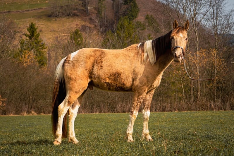 Das 4-jährige Curly Horse, Wallach, sucht einen liebevollen Platz ohne sportliche Ambitonen. Der Wallach ist roh und Passgänger