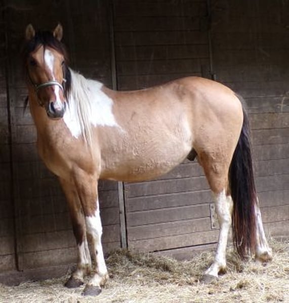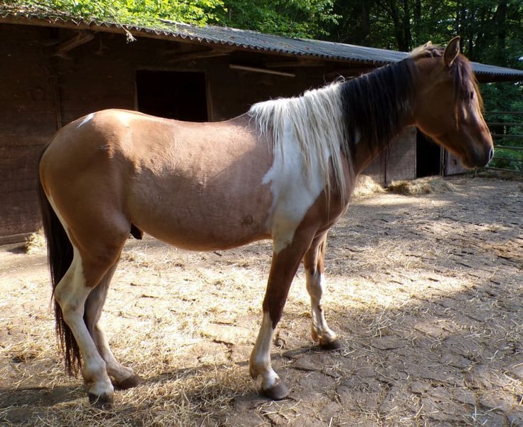 Nuestro chico es hijo de una yegua Curly Foxtrotter y un semental Paint, y debería alcanzar una altura final de 1,48 - 1,50 m. Es un compañero amigable, curioso y muy sociable, y ahora está en la edad ideal para comenzar su entrenamiento. Ha crecido en un grupo en un establo abierto y actualmente está en un grupo de machos. Se lleva bien en la manada y ocupa un rango medio. Ya está deseando encontrar un bonito hogar y vivir muchas aventuras.