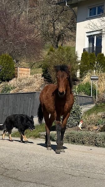 • Lebt aktuell ganzjähriger Weidehaltung mit Mama, Papa, ihrer „Tante“ und deren Fohlen.