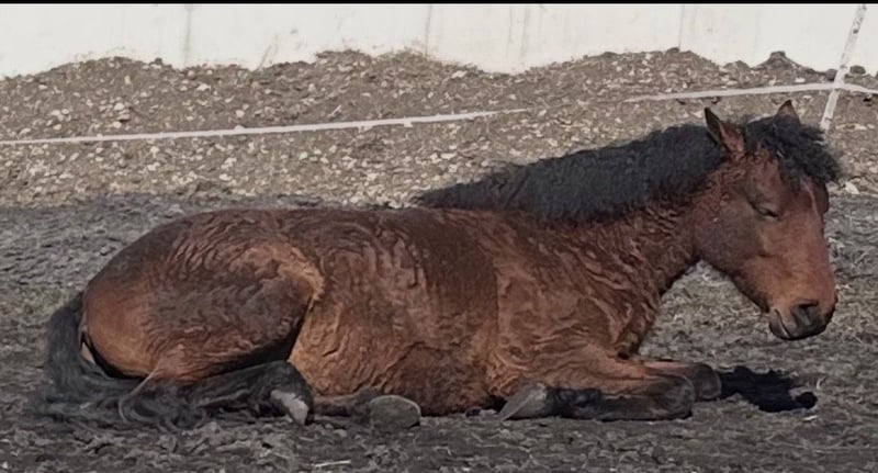 American Bashkir Curly mare, born in 2022, approximately 14.1 hh – with exceptional movement and a lot of personality With a heavy heart – for personal reasons – I am seeking a suitable, long-term home for my American Bashkir Curly mare. This is not an urgent sale. She is a young, very alert and personable mare with a strong presence. Curious, playful, yet attentive and sensitive in handling. She enjoys human contact very much and willingly allows grooming and handling. She is well-behaved, halter-trained, and easily led. She handles solo walks with her handler confidently and calmly. She is already familiar with ground work, as well as various environmental stimuli such as cars, dogs, and children. She was raised in a herd and is accustomed to both pasture and stable with paddock. She is very tidy in her stable. Within the herd, she establishes herself confidently and shows self-assurance. Farrier and veterinarian visits are no problem for her. She is loading well, healthy, vaccinated, and in excellent condition. Currently, she is being gradually and gently prepared for further training, appropriate to her age. Her movement is particularly noteworthy: She demonstrates good scope, rhythm, and a smooth, supple gait with additional quality. Color: Brown with year-round lightly curly Curly coat, dark legs Height: approx. 14.1 hh Awarded as a foal at licensing. Pedigree available; details gladly upon request. Transport can be arranged at an additional cost. Accessories can also be provided for an extra fee. Regularly vaccinated, dewormed, and in good health. The last three photos show her parents. Deliah Sire: Django – Black (Rappe) Dam: Desba – Brown