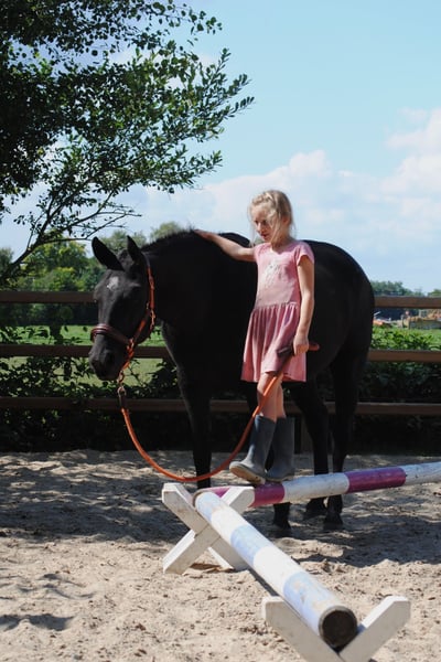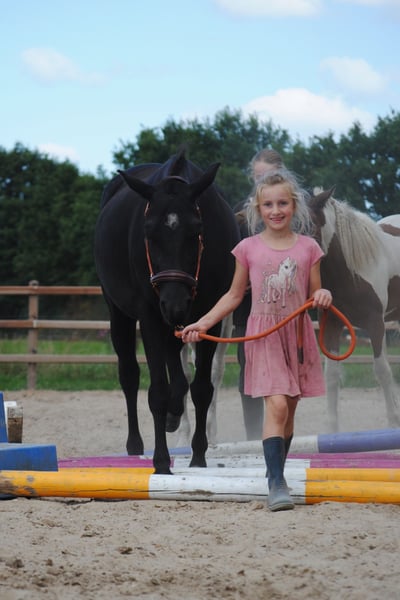 Kitty en Delight van de Heavenlysmile Kitty is onze 6-jarige Curly-merrie van 1.47. Ze is homozygoot KRT25 (brengt altijd krullende veulens voort). Als gevolg hiervan verliest ze in het voorjaar haar hele manen en het grootste deel van haar staart. Ze heeft momenteel een prachtig zilverbruin merrieveulen van Legend from the Heavenlymile!! Het veulen zal 1.53-1.55 worden!! Samen met haar veulen of na het spenen van dit veulen is ze beschikbaar voor een nieuw thuis. We zijn net begonnen met het rijden van Kitty, ze heeft dus nog verdere training nodig. Ze neemt alles heel goed op! Kitty zou zeer geschikt zijn als sport- of recreatiepony voor kinderen/jongeren/kleine volwassenen. Ook vanwege haar in Europa bijna unieke afstamming, haar zeer fijne type en haar uitzonderlijk goede bewegingsapparaat is ze ook zeer geschikt voor de fokkerij van een volgend veulen. Kitty is een dochter van KC Thundercloud en een kleindochter van Adonis. Hierbij bieden we de mogelijkheid om haar door ons te laten dekken/besamen met een hengst naar keuze. Wilt u meer informatie of de prijs weten? Ik ben hier om al uw vragen te beantwoorden. Ik zou heel graag horen waar ze terecht zou komen en wat u met haar van plan bent. Voor de prijs is het voor mij nuttig om te weten of u Kitty met of zonder haar veulen wilt overnemen. Wij fokken al 11 jaar Curly Horses. Ons doel is om een zeer vriendelijk en veelzijdig hypoallergeen paard te fokken. Dit is geschikt voor jong en oud, voor recreatie en topsport! Wij bieden al onze dieren de best mogelijke zorg, met de juiste vaccinaties en tijdige hoefverzorging. Onze vermelde prijzen zijn exclusief btw, inspecties en transportkosten. Als u meer informatie wilt of vragen heeft, stuur me gerust een bericht!