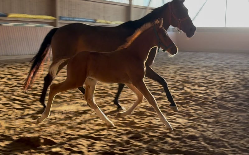 Zum Verkauf steht ein vielversprechender Hengst aus dem Jahr 2025. **Merkmale:** - Rasse: Deutsches Reitpferd - Farbe: Fuchs - Disziplin: Dressur Seine lange elegante Halsung und langen Beine machen ihn jetzt schon zu einem Blickfang. Er ist brav im Umgang, gut erzogen und zeigt 3 hervorragende Grundgangarten. El Dorado hat ein freundliches Wesen, neugierig und beherrscht das Fohlen ABC. Bei Interesse oder für weitere Informationen stehe ich Ihnen gerne zur Verfügung. Besichtigungen sind nach Absprache möglich. Wir freuen uns auf Ihre Nachricht!