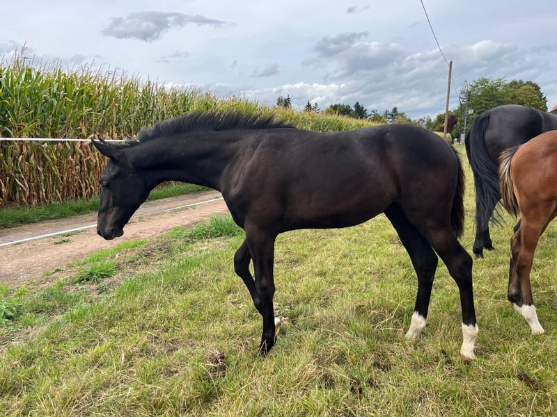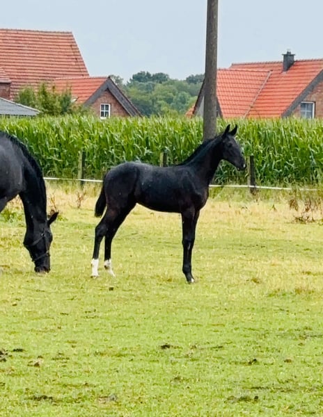 ‼️DRESSURFOHLEN, HENGSTFOHLEN AUS ERFOLGREICHEM MUTTERSTAMM‼️ Zum Verkauf, steht ein wunderschönes Hengstfohlen in dunkler Jacke mit überdurchschnittlichen GGA von For Dior aus einer Staatsprämienstute von Bon Bravour / Sir Donnerhall II / Warkant / Wembley / Absatz / Laibach. Das Fohlen erblickte am 08.04.2025 das Licht der Welt. Die Mutter der Stute brachte bereits einen gekörten Sohn von Scolari. Das Fohlen entstammt dem direkten Mutterstamm des Siegerhengstes Dark Dynamic (v. Dream Boy),und weiteren vielen gekörten Hengsten u.a. wie Zake ( v. Zoom) Pik Ayolo v. Acobat II (SPR int. 1,60 m erfolgr.), Advokat v. Acord II, All in One v. Acord II, Atrejou v. Absatz, C'est la Vie v. Cor de la Bryère, Cabo Verde v. Christian (SPR int. 1,40 m erfolgr.), Charme v. Condor, Floyd TN v. Fürstenball, Florentiner v. Fürstenball, Florenz v. Florencio I (DR PSG/Inter I erfolgr.), For Austria v. For Romance I, Gardehusar v. Gotthard, Graphito v. Graphit, Lakai v. Lasso, Lord of Loxley v. Lord Sinclair I (DR Grand Prix erfolgr.), Puccini v. Pablo, Sandig v. Sandro Hit, Salto Mortale v. Stakkato, Quidam's Top v. Quidam de Revel, Summertime v. Scolari Sportpferde: Sinclaire 5 v. Singolar Joter I (SPR int. 1,60 m erfolgr./Christian Ahlmann), Sandro Paix v. Sandro Hit (DR int. Grand Prix erfolgr.), Celtas Chidambaram v. Kansas (SPR int. 1,60 m erfolgr.), Groszor Z v. Grosso Z (DR Grand Prix erfolgr.), Pik Cayola v. Picard (SPR 1,50 m erfolgr.), Giselle 96 v. Graf Top I (SPR int. 1,50 m erfolgr.), Galaya von Hof v. Galayo von Silla (SPR int. 1,55 m erfolgr.), Una Bella von Hof v. Uno II (SPR int. 1,45 m erfolgr.), Solo Dancer 3 v. Sir Donnerhall I (DR int. PSG/Inter I erfolgr.), Sedona 5 v. Sir Donnerhall I (DR S erfolgr.), Rhapsodie 119 v. Raphael (SPR 1,30 m erfolgr.) Wächst mit anderen Fohlen im Herdenverband auf, und kennt das Fohlen ABC ‼️Auf dem Video ist die Mutter des Fohlens zu sehen‼️ Bei Fragen stehe ich Ihnen gerne zur Verfügung! ( Scheuen Sie sich nicht vorbeizukommen)