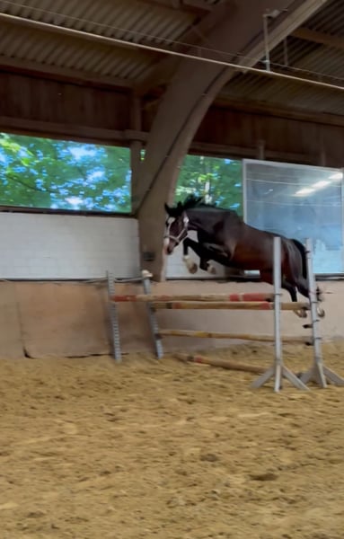 Gralli is a gelding with a lot of potential and a great character. He gives his all for his person – he is very people-oriented, attentive, and always wants to please. Currently, he is regularly ridden by children and teenagers and shows himself to be absolutely well-behaved and reliable. He goes out on trails relaxed and safely, whether alone or in a group. He is a truly dependable horse. Even beginners ride him safely and calmly. However, we do not want to sell him as a purely beginner horse, but rather to a rider who enjoys varied work. Gralli really shines in jumping. He brings a lot of joy to the activity, has a good approach to the jump without getting hot. He has enough quality to be developed in show jumping; currently, we are jumping him at A/L level. In dressage, he also shows himself to be motivated and sensitive. He is light to ride, responds well to aids, and enjoys working together. In handling, Gralli is uncomplicated; he is regularly cared for by an osteopath, dentist, and farrier. We wish for Gralli a place where he will continue to be developed, but also where he is not just "any" horse in the stable, but a true heart horse for his new owners. Gralli will only be given to the best hands – home before price! Location: 40885 Ratingen Price: 12,000 Euro negotiable Phone number: 015757175200 Videos: https://www.instagram.com/stories/highlights/17847481026432310/ To prevent riding tourism, we charge 20 Euro for a trial ride, which will be deducted from the purchase price if a sale occurs.