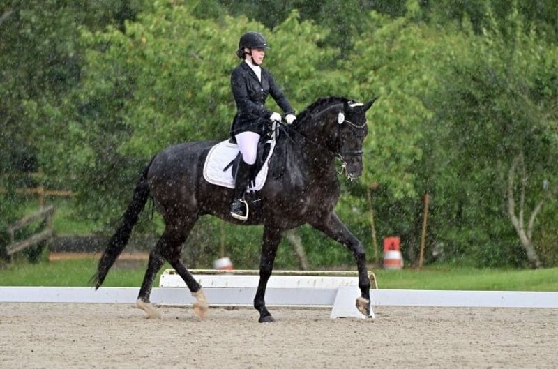 Aprendizaje y curioso compañero de deporte, que disfruta ser montado. También se adapta fácilmente a diferentes jinetes y jineteas (incluidos niños en riendas). Gracias a su excelente conformación general y a su talento para los movimientos laterales, se le suele ver principalmente en el círculo de doma. Sin embargo, a Legolas también le gusta saltar, hacer paseos en el campo o trabajar en el suelo. Criado cuidadosamente en nuestra finca, iniciado en la mano y actualmente entrenado hasta la categoría de doma M. Ha competido en categorías L y M de doma. Actualmente, está siendo entrenado por una jinete de 17 años en colaboración con su entrenadora, que ha tenido éxito hasta la categoría S**. Por favor, envíe mensajes de texto o de voz únicamente al teléfono 0171…. Le asesoramos con competencia y dedicación durante una visita con prueba de monta.