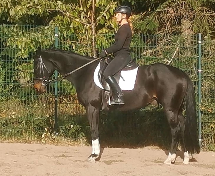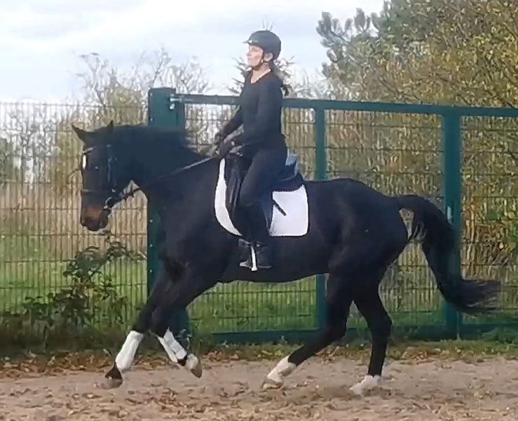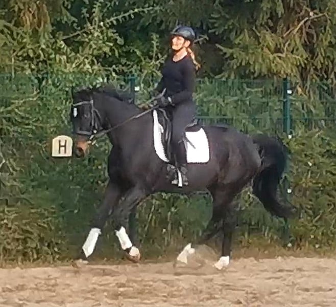 Sehr lieber und umgänglicher Wallach vom Oldenburger Elitedressurhengst St. Schufro und einer Mutter von Feiner Stern (Hann.) aus der Furioso II-Linie, also doppelveranlagt in Dressur und Springen. Wurde leider nie wirklich gefördert und hat daher etwas Nachholbedarf, um sein ganzes Potential zum Vorschein zu bringen. Befindet sich derzeit bei mir in Beritt und wird vielseitig weiter ausgebildet. Ein Pferd, das bei weiterer Förderung durch eine feinfühlige Reiterin sehr viel Spaß machen wird und endlich seinen Menschen sucht. Im linken Auge hat der Wallach einen kleinen weißen Fleck, bei dem es sich laut TA der Vorbesitzerin um eine verletzungsbedingte Keratitis aus Jugendzeiten handelt, die vermutlich das Sehvermögen etwas einschränkt, aber sich im Alltag als absolut irrelevant herausgestellt hat. Ich bin nicht die Verkäuferin, sondern helfe lediglich dem Eigentümer, einen lieben neuen Besitzer zu finden. Das Pferd kann aber bei mir besichtigt und probegeritten werden.