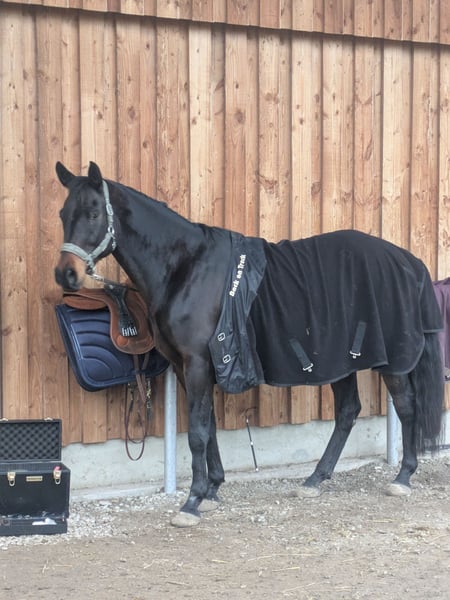 Loving and playful 11-year-old Arabian Oldenburg mix. He is familiar with classical groundwork, lunging, riding indoors, on the arena, and in the field. Currently, he is stabled in an active barn with a gelding group. He enjoys free work and classical groundwork the most. He can only be entrusted to the very best hands.