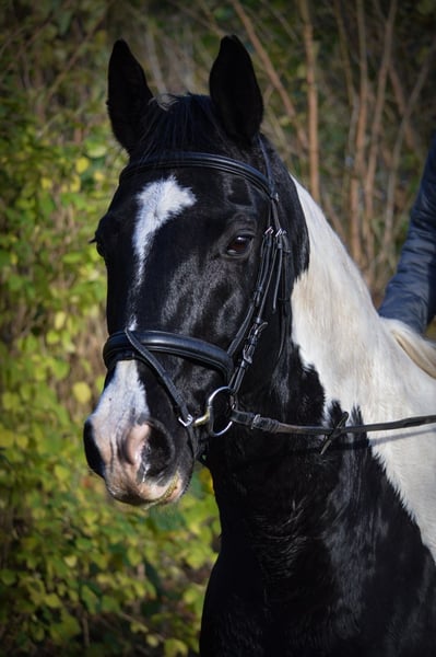 Dieser hübsche 14 Jährige Schecke sucht ein neues Zuhause. Als Yoshi zu uns kam zeigte er unmittelbar danach eine Lahmheit. Nach aufwendiger Diagnostik wurde eine alte Verletzung am Fesselträger festgestellt. Er stand nun gut 9 Monate nur auf der Koppel, um sich zu kurieren. Und so hatten wir erst jetzt Zeit, ihn richtig kennenzulernen. Yoshi freut sich sehr über die Zuwendung, ist gut zu reiten und mit angenehmen Go ausgestattet. Alleine in der Halle, Verlassen des Hofs, Trecker und sonstige Dinge um ihn herum bringen ihn nicht aus der Fassung. Wirklich ein toller Kumpel, der jedoch auch sensibel ist. Reiter die Klammern oder an den Zügeln ziehen gefallen ihm nicht, und auf zu viel Druck reagiert er mit Gegendruck. Dieser ausgesprochen hübsche Kerl sucht einen sicheren, feinfühligen Reiter . Unsere Reitschüler können das noch nicht leisten, wobei die Fortgeschrittenen viel Spaß haben ihn zu reiten.