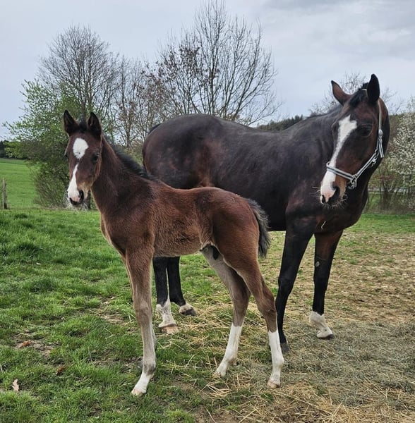 Geboren März 2024. Verkauft wird ein typstarker Wallach mit elastischen schwungvollen GGA, Halbbruder zu FBW Zimtstern. Von Prime Time x Sir Oldenburg Wir bieten einen außergewöhnlichen jungen Wallach zum Verkauf an. Dieses vielversprechende Deutsche Sportpferd aus dem Jahr 2024 besticht durch seine elegante Erscheinung und sein hervorragendes Potenzial in der Dressur. Der Braune zeigt bereits jetzt beeindruckende Bewegungen und eine natürliche Anmut, die ihn zu einem zukünftigen Star im Dressurviereck machen könnten. Er ist bestens geeignet für ambitionierte Reiter, die ein talentiertes Nachwuchspferd suchen, um gemeinsam große Erfolge zu feiern. Sein freundliches Wesen und seine Lernbereitschaft machen ihn zu einem angenehmen Partner im täglichen Umgang. Für weitere Informationen und Besichtigungstermine kontaktieren Sie uns bitte. Wir freuen uns darauf, Ihnen diesen außergewöhnlichen Wallach persönlich vorzustellen. Angaben zum Mutterstamm: Aus dem Mutterstamm kommen mehrere Staatsprämienstuten, gekörte Hengste etc.