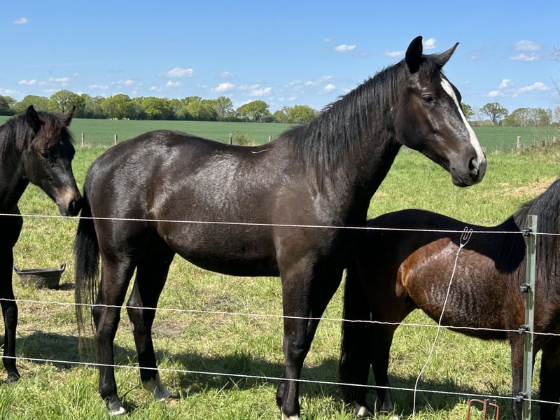 Tobi ist bei uns geboren und hat sich zu einem sehr freundlichen und ausgeglicheneren Wallach entwickelt. Seine Mutter stammt aus einer alten polnischen Trakehnerzucht und wurde von Titolas, dem Sohn von Totilas ( Hannoveraner) gedeckt. Er war 9 Monate bei der Mutter. Sein ganzes Leben ist er sehr viel auf Koppeln in unterschiedlichen Gruppen gewesen ( Stuten und Fohlengruppe, dann Junghengstegruppe und nun geschmischte Herde.) In der Gruppe ist er freundlich mit den anderen Pferden und hat einen mittleren Rang. Die Nachkommen von Titolas sind häufig Spätentwickler, so dass es gut sein kann, dass Tobi noch größer wird und sich körperlich noch auswächst. Die Nachkommen sind für ihr nettes und ruhiges Wesen bekannt. Charakterlich ist Tobi, wie gerade schon erwähnt, sehr freundlich und dem Menschen zugetan. Er wurde schon mehrmals mit dem Änhänger gefahren, ist regelmäßig beim Schmied und ist halfterführig. Er kennt es an der Straße geführt zu werden und leichte Bodenarbeit in der Halle. Wir hoffen, dass unser geliebter Tobi einen Besitzer:in bekommt, die ihn zu schätzen weiß und er ein neues tolles Zuhause bekommt. 4 Fotos zeigen ihn momentan, die anderen Fotos sind vom Mai 2025.
