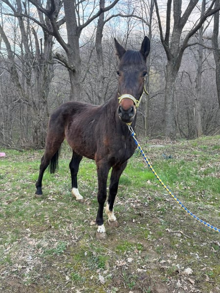For sale a coming 4 year old on 01.06.2026 gelding. 146 cm height, very well behaved and simple, already ridden 3 times on the trail behind one of his pasture friends. Did not even buck once, also not spooky so a very nice head on him. Very low ranked in the herd so in a bigger group he must be fed separately. All his brothers, sisters jumped good . Horse is in Romania, transport easily arranged through a company .