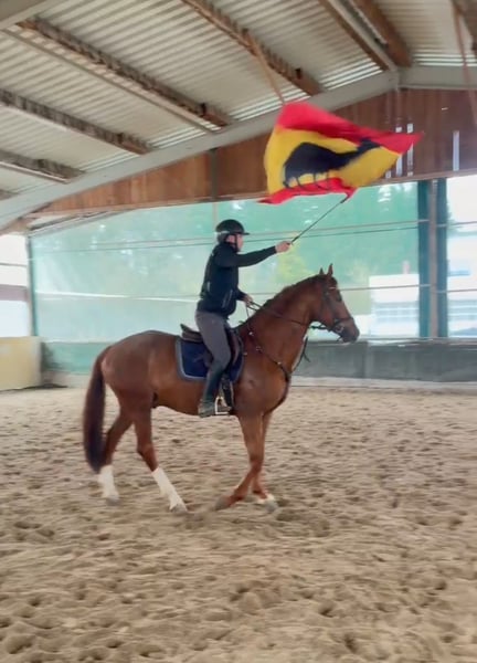4 jähriger dunkelfuchs Wallach von Hickstead White × Euroking zu verkaufen. Er ist 167 cm groß. Er springt bereits einen kleinen Parcours, kennt Straßenverkehr, Hunde, etc. Sehr brav und unerschrocken. Er ist gesund und regelmäßig geimpft. Röntgenbilder können bei Interesse gemacht werden. Er ist direkt vom Züchter und ist zurzeit in Beritt. Probereiten ist gerne möglich.