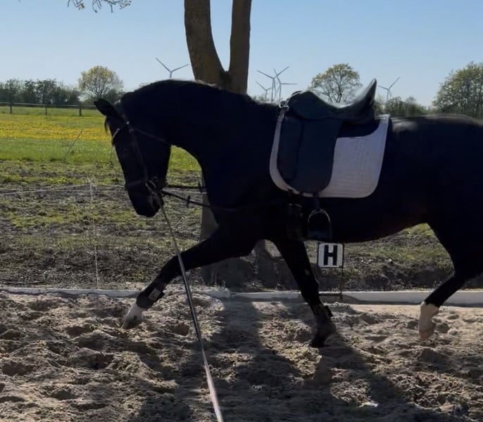 Zum Verkauf steht ein außergewöhnlich schöner 4-jähriger Wallach mit beeindruckender Präsenz, bestem Charakter und hervorragenden Reitpferdepoints. Mit seinem eleganten Auftreten, seinem modernen Exterieur und drei überragenden Grundgangarten begeistert er auf den ersten Blick. Ein Pferd mit echter Ausstrahlung und großem Potenzial für Sport und gehobene Freizeit. Dieser auffallend schöne Wallach misst ca 1,69 m und überzeugt nicht nur durch seine Optik, sondern auch durch seine Qualität unter dem Sattel. Er zeigt sich lernwillig, klar im Kopf und stets motiviert beim anreiten. Seine Bewegungen sind von Takt, Elastizität und Schwung geprägt – ideale Voraussetzungen für eine erfolgreiche Zukunft im Dressursport. Abstammung der Extraklasse: Vater ist der gefeierte Despacito – dreijährig Hannoveraner Champion und Vize-Bundeschampion. Auch später sportlich erfolgreich und in Topform. Gezogen über Don Nobless – Sandro Hit – De Niro, vereint er absolute Leistungsgenetik mit modernem Dressurtyp mit Höchstnoten. Die Mutter stammt ab von Sezuan und wurde ebenfalls erfolgreich auf Turnieren vorgestellt. Sie konnte bereits erste Dressurprüfungen für sich entscheiden und unterstreicht die Leistungsstärke dieses Mutterstamms. Der Wallach ist gesund, hatte bisher keinerlei Erkrankungen und wächst unter besten Bedingungen auf. Ein Pferd für Kenner, die Qualität, Schönheit und Perspektive suchen. Er wird nur in gute Hände verkauft, kein Notverkauf!!! Auf unreelle Preisvorschläge wird nicht reagiert. Bei ernsthaftem Interesse freue ich mich über eine Nachricht.