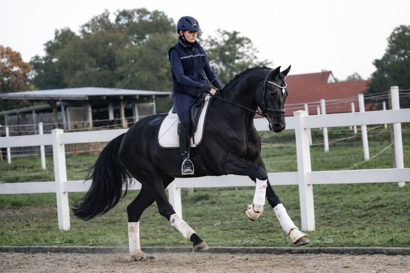 | Advertisement | Location: 49509 Recke | Westphalian | Gelding | Black | *2012 | 16.1 hh | by Dornier We have a promising young sporthorse for the grand prix arena with "Der Poet." In addition to his elegant appearance, "Der Poet" is equipped with three solid basic gaits, with his canter being particularly impressive. Last late summer, the gelding was lightly backed. He is very well-behaved and affectionate in handling. Under saddle, he learns quickly and strives to please his rider. His pedigree already indicates suitability for riding and a willingness to perform, as he descends from his sire Dornier and on his dam’s side from the legendary Neustädter P line (direct line of Poetin), both of which are highly successful sporthorse producers known for their own achievements and successful offspring. With further training and development, we see "Der Poet" as a future contender in high-level dressage. https://youtu.be/ch8R5rd_Dqs?is=BzTDjKbuhn4WAk3s A radiological examination is available and free of findings. For serious inquiries, please contact us by phone at +49 170 7941333.